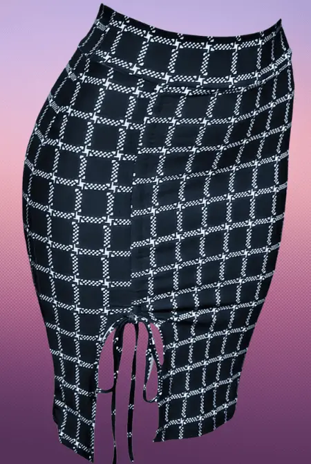 A nossa saia longa em tecido malha lycra, com padrão quadriculado em branco e azul marinho, oferece o equilíbrio perfeito entre estilo, sofisticação e conforto. Ideal para mulheres elegantes, essa peça ajusta-se perfeitamente ao corpo graças ao regulador frontal, proporcionando um caimento personalizado e único.